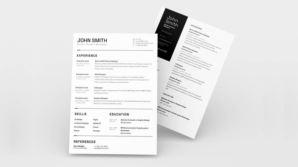 5 editable Figma files of resume templates that can be exported as PDF
